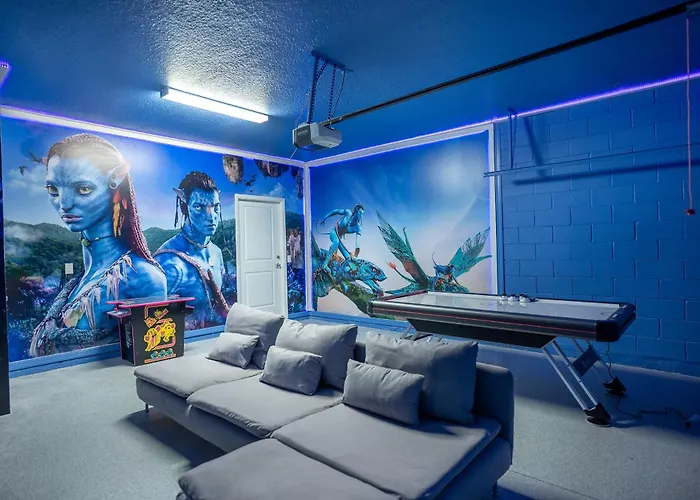 During the stay at Disney Getaway Luxury Villa With Private Pool Game Room. Book Now Wc51 Orlando, guests can indulge in spa treatments, such as beauty services or visit Showcase of Citrus, located 6 km away. This villa features opportunities for cycling in the area, a 10-minute drive from Buccaneer Bay.